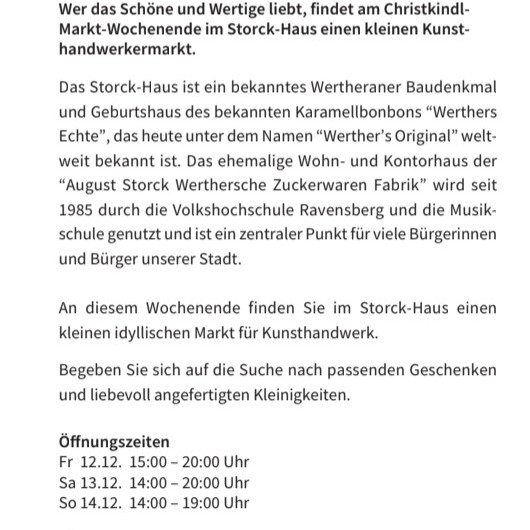 Markt Termine 12.12 – 14.12 Dezember 12, 2025 / Christkindl Markt in Werther die letzte Chance schöne Geschenke für sich und andere zu kaufen 😊